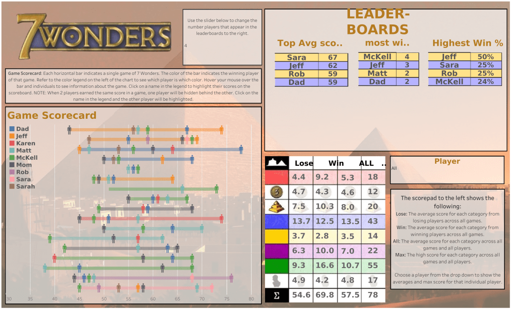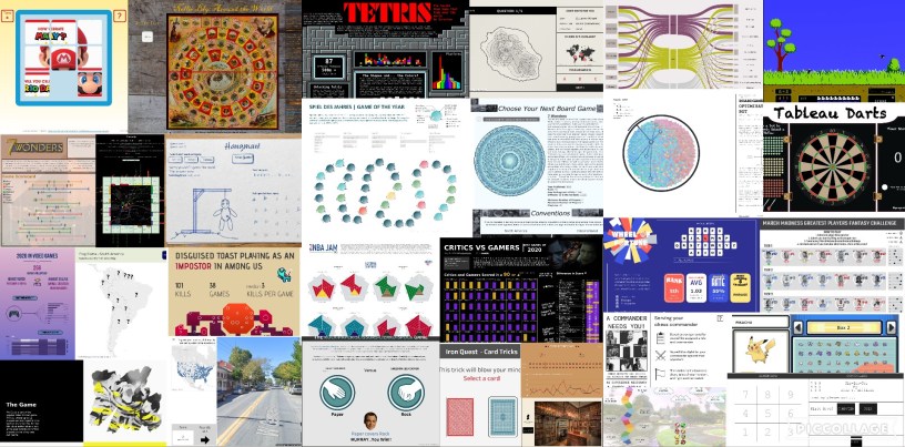 All of the entries are posted below in alphabetical order by first name (note: the placement of some vizzes have been adjusted slightly for ease of viewing). Again, I have split this section into two; the first focuses on games built in Tableau and the second includes vizzes on the topic of games.