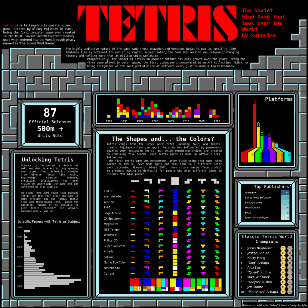 I’m a big fan of Lupi’s work and Lisa applied the technique perfectly here. She even designed the layout to look like a board game! I imagine this viz would be particularly useful to anyone looking for new board game inspiration. Kevin and I reviewed this viz during our feedback call and one thing we noted was the absence of any summary statistics. While the main visual is great, the encoding can be difficult to consume at a high level, especially when trying to determine overall themes. To overcome this, we suggested Lisa add a few charts to show aggregated, high-level metrics on the types of games that have won the ‘ Spiel des Jahres’ award over the years. Lisa took on our feedback and updated her viz with the addition of a few summary charts. I think the new version looks great!