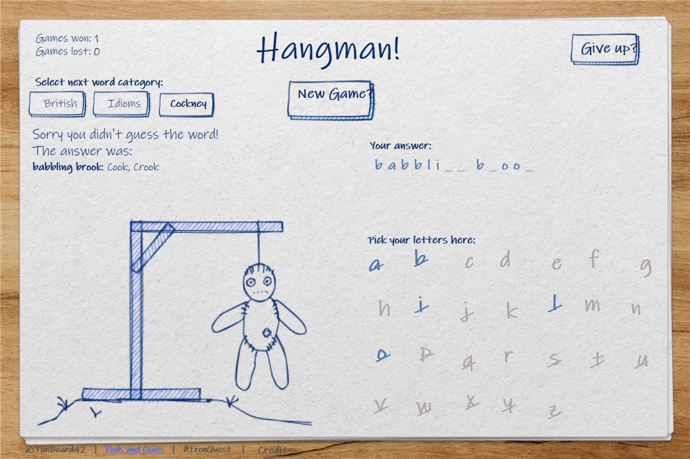 This is a fun game that is well-presented with a simple design, minimal colours and effective, click-through functionality. I love how Wendy used Mapbox to create custom maps for each of the islands for both on the homepage and the question pages. The use of a topographic map helps to present the player with a few more clues about the islands without giving too much away.