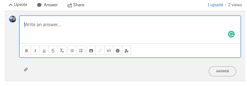 You’ll notice there are several options on the bar within the answer box which can be used to format text, add hyperlinks or attach images. You can also attach a packaged workbook by using the paperclip icon.