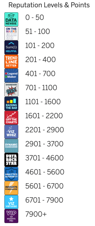 As you earn points, you’ll move through the reputation levels and move up the leaderboard. Each reputation level has a badge associated with it, starting with the “Data Newbie” level:
