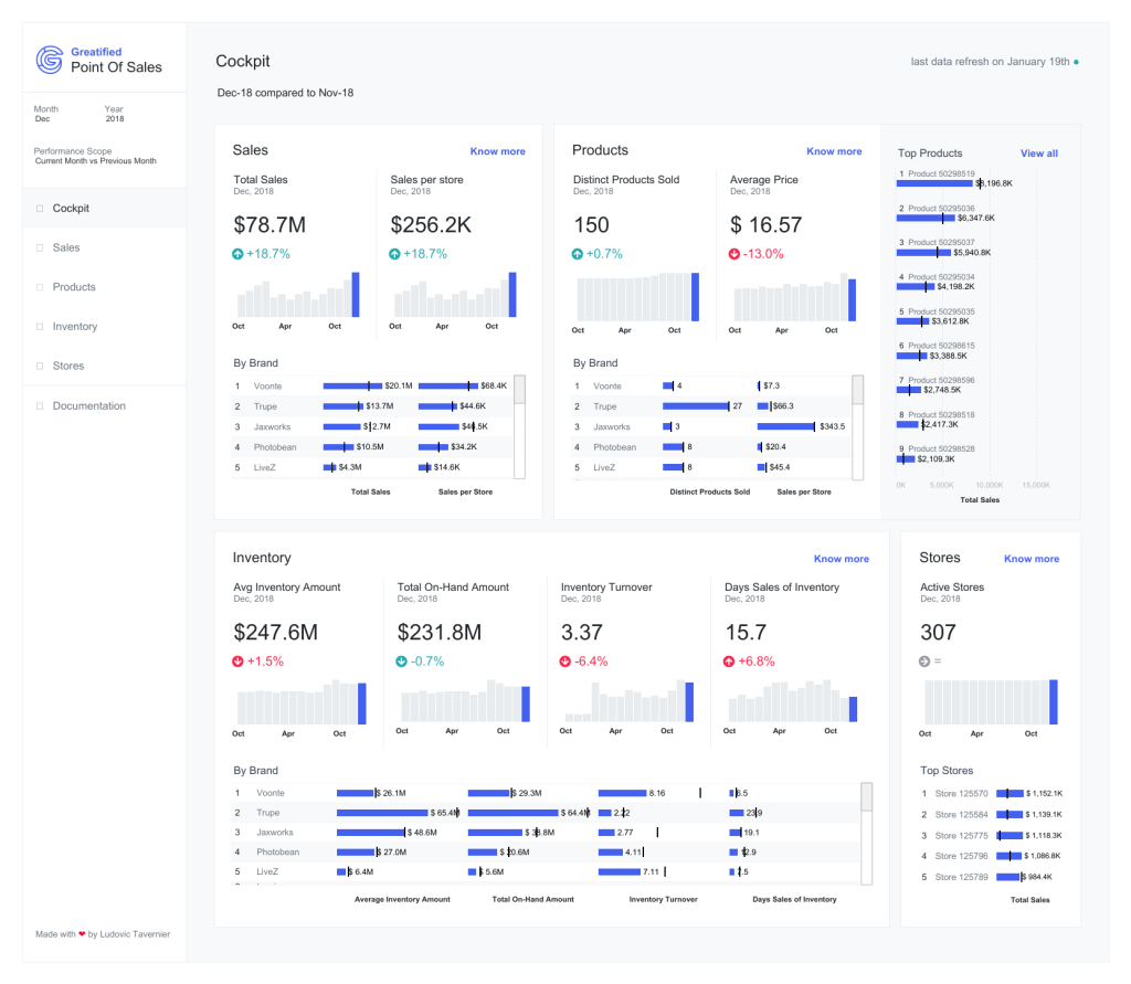 Finally, Ludovic Tavernier also recreated a dashboard from the Tableau Accelerators gallery. This time the sample Cockpit dashboard focused on Retail Point of Sale Data:
