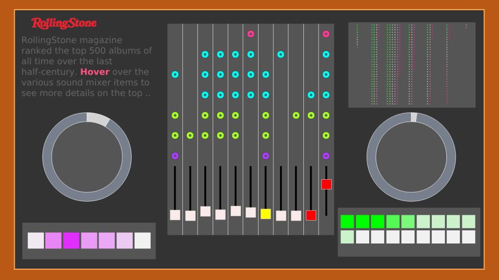 For this viz, Jason used a DJ mixing table to visualise the Rolling Stone top 500 albums of all time (over the last half-century). Jason invites the audience to hover over the various elements on the mixing table to view more details and analysis of the top albums, bands and genres featured in this collection of albums. There are tons of insights packed into the innovative viz! I encourage you to explore it for yourself on Tableau Public.